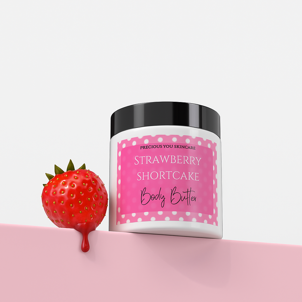 Indulge in our Strawberry Shortcake body butter, made with the perfect blend of juicy strawberries and creamy sweetened whipped cream. Our luxurious butter leaves your skin moisturized and smelling irresistible. Treat yourself to a deliciously fragrant experience!